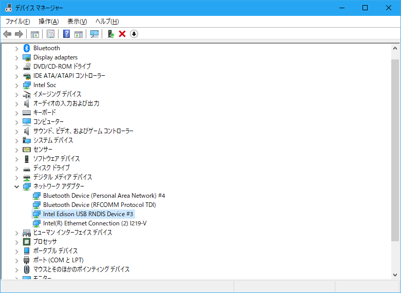 …と書いたのですが、もしかすると Intel Edison 用ドライバを以前インストールしたことがあったからかもしれません。デバイスマネージャに上のような表示が出ない場合は「Intel Edison のセットアップ」にあるようにインストーラを起動して最初の項目が「USB drivers installed」「Repair Drivers >」という表示になるようにドライバをインストールしてください。ちなみに、Flash Firmware 以下のボタンをクリックしてしまうと Webmo のファームウェアがリセットされたり設定が書き換わったりするので、そのあたりの意味を 100%理解していない限り絶対にやらないようにしてください。