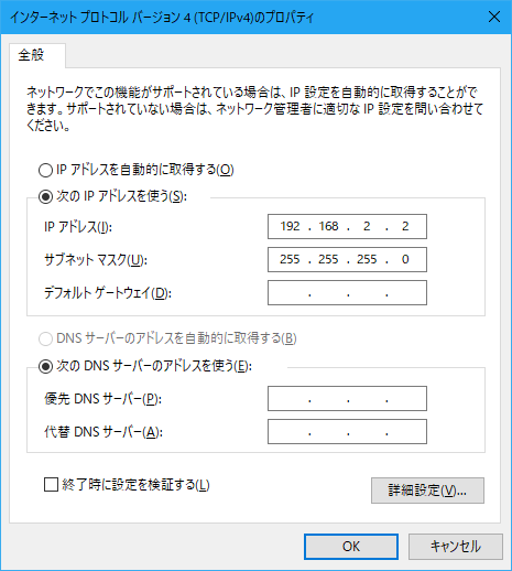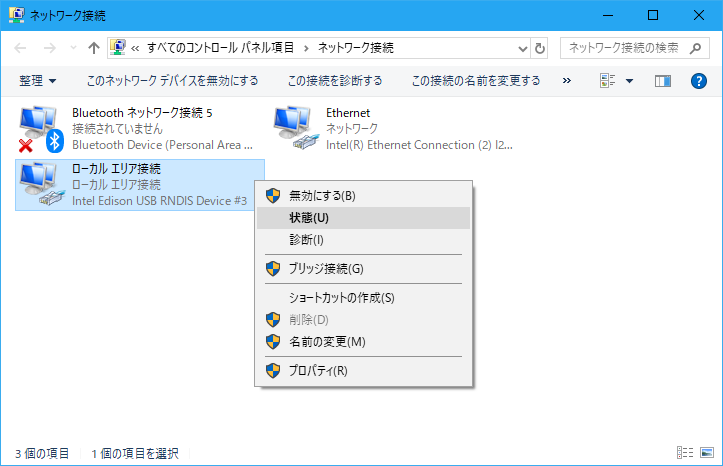 右クリックで出るメニューから「プロパティ」を選んで IP アドレスなどの設定を変えられます。