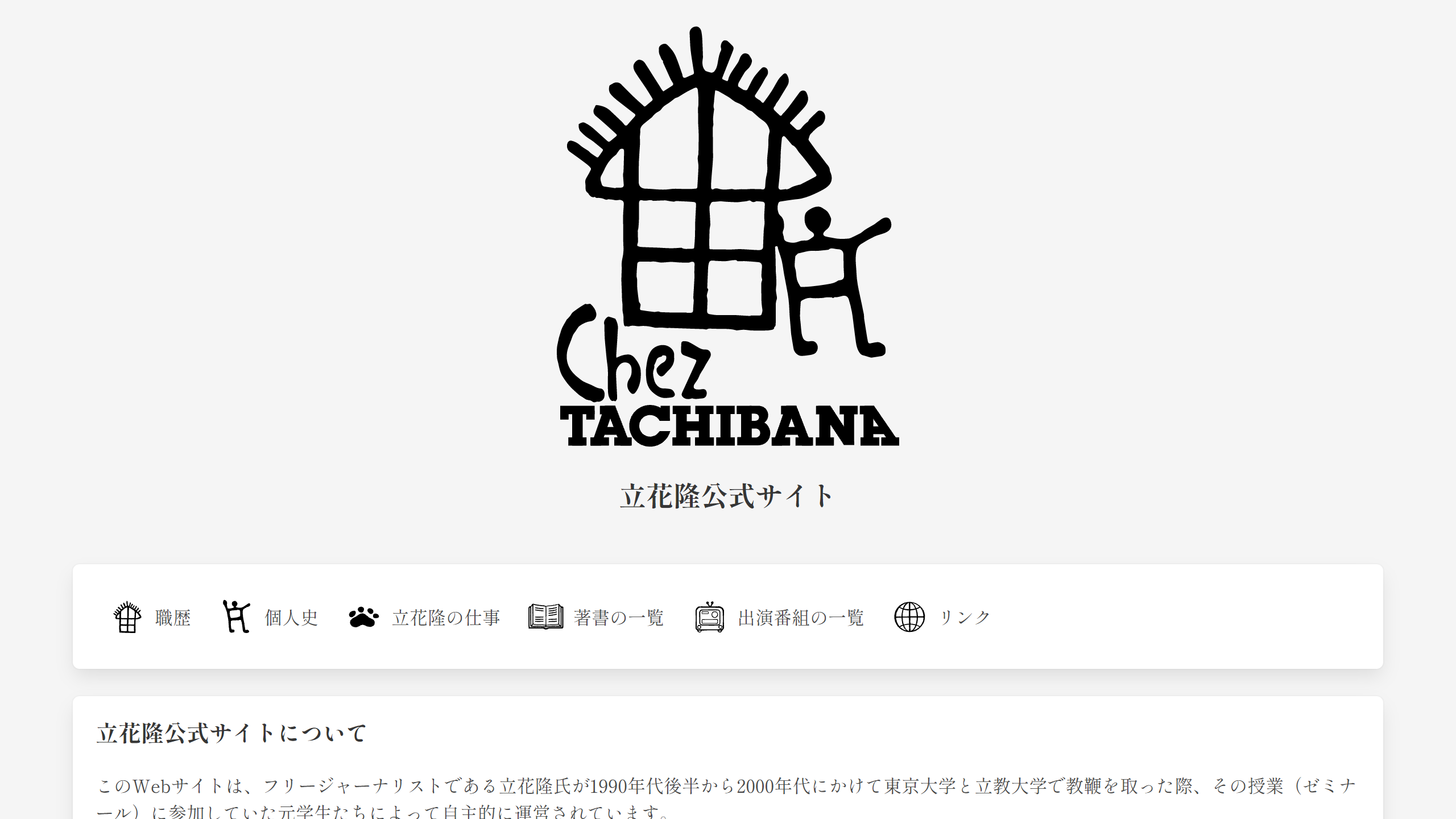 前置きが長くなりましたが、かつて私は、そんな氏の公式サイトのメンテナンスをしていました。ただ、公式サイトはドメインの失効とともに閉鎖になっていたのです。訃報を受けて、立花ゼミの友人とともに一から作り直して 6 月に https://tachibana.rip で公開しました。